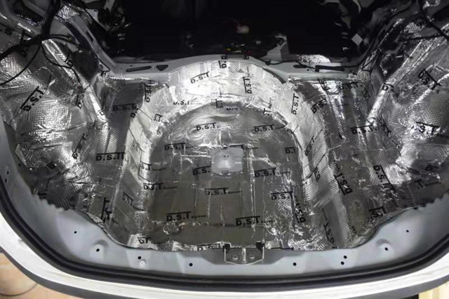 改装技师细致的对整个后尾箱部分进行包裹,使用优质DST隔音材料,避免驾驶过程中因震动过大而影响心情,还客户一个安静的驾驶环境的同时,更好的发挥出改装音响的功效。