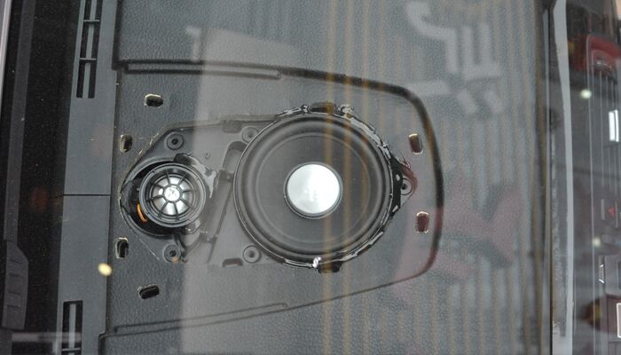前声场高音三角板位直接替换即可。可以清楚的看见哈曼卡顿的字样。