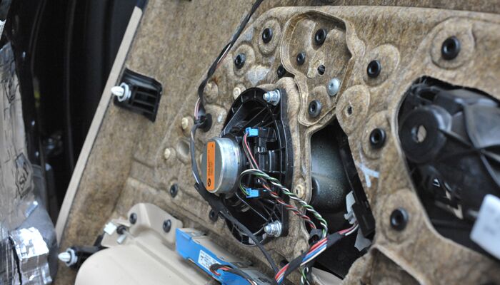由于哈曼卡顿L7属于原装宝马喇叭,所以安装时不需要更改喇叭线路只需要将原车喇叭拆下将哈曼卡顿L7原位装上、线头对插即可。