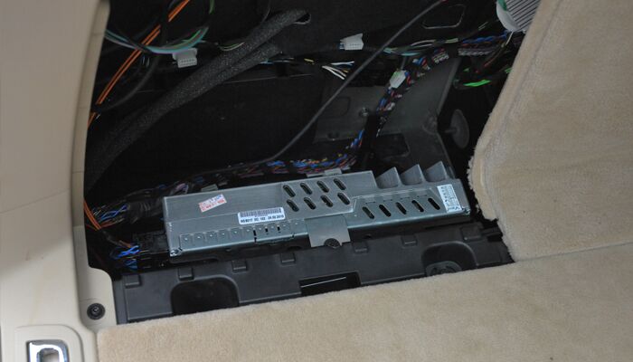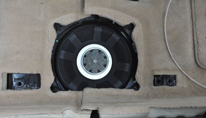 宝马中低音安装在正负驾驶室座位下面,将原车中低音喇叭连同喇叭箱体一同拆下换上哈曼卡顿L7中低音,改装完成看不出有任何改变,但音响效果已经悄然改变。
