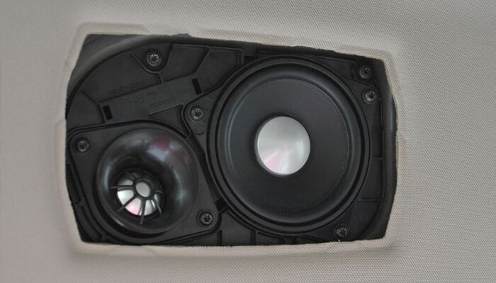 后声场喇叭在顶棚位置,拆下原车中音和高音喇叭,将哈曼卡顿L7中音、高音换上插上原车线束即安装完成。