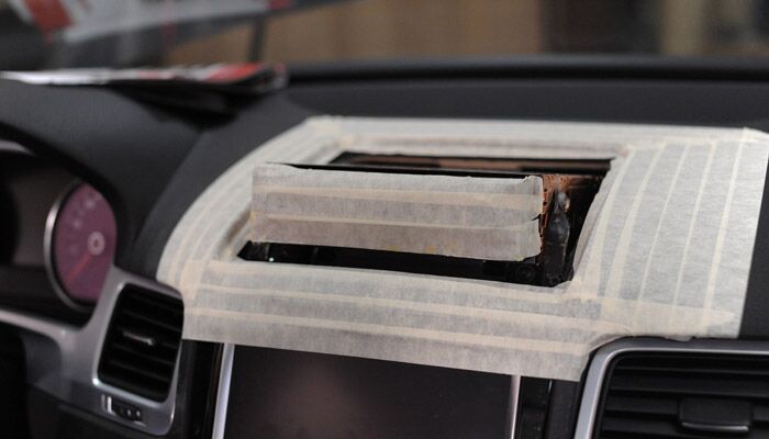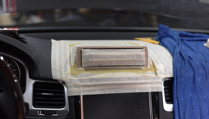 主机倒模需要在仪表台上面操作,所以保护是不能少的,美纹纸全面保护,避免划伤仪表台,留下痕迹就不好了。