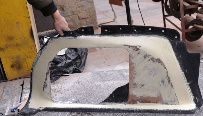 本帖中的亮点来了,车主为了尽快能节约后备箱空间,与我们商量,低音就进行补行箱倒模,倒模在左侧后备箱中。