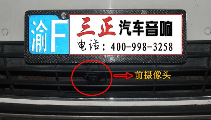 下面我就带大家进入实际安装案例,前视摄像头一般都是安装在车头进气隔位置,这样可以让摄像头最大限度的拍摄前方图像,也方便最后无缝拼接的调试。