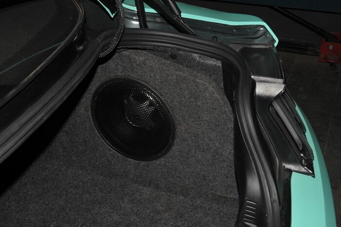福特野马的前声场喇叭被替换成了歌诗尼169H3,三分频套装喇叭音乐的立体感和层次感都要更强一些,但是在安装时候对于安装位置以及安装技巧的要求也十分的严格。重庆三正的改装技师经过精准的定位之后将歌诗尼169H3的中音单元安装在了门板靠近门把手的位置,而高音单元则被安装在了A柱上。
