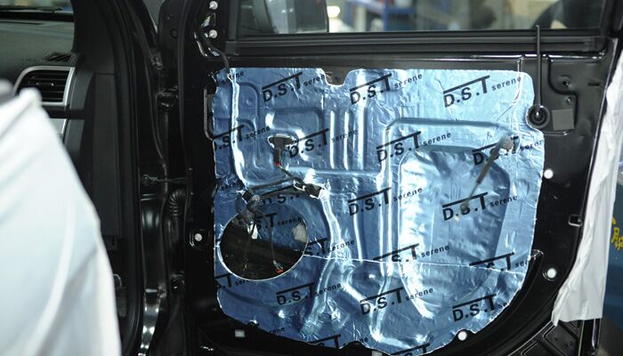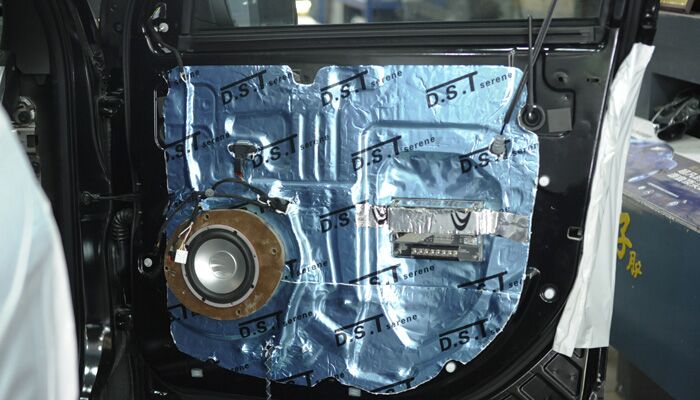 首先是车门隔音,车门为车内噪音的主要来源,对这个部位的隔音处理,将有效地降低路燥。(同时,增强了车门钣金强度,减少共振,改变了喇叭的安装环境,使车门变成了一个密封、扎实的箱体,使喇叭还远出最好的音质效果。)