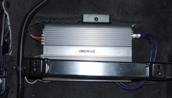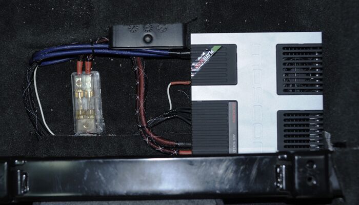 MOSCON功放安装在主座下面,不但为车主节约了车内很多有用空间而且还看不见改装痕迹。