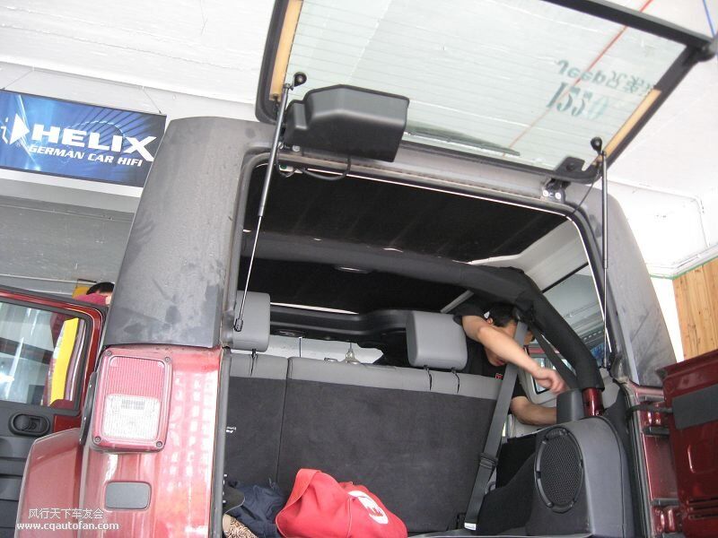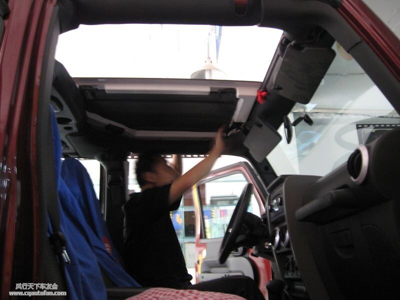 牧马人车顶的拆除真的太简单了,顶篷分3大块,先拆开驾驶位上面的小块,再拆除副驾上面的小块,最后就拆下后面的大顶篷: