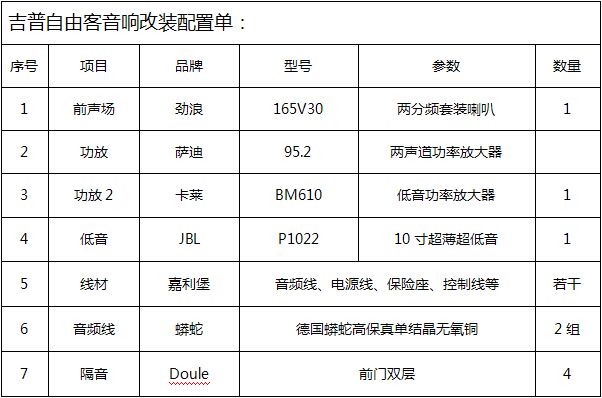 吉普自由客音响升级配置清单如下: