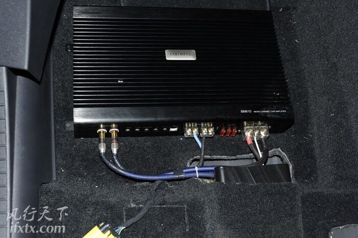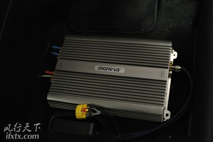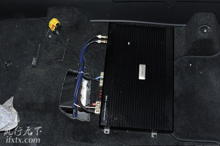两台功放分别放置在正、副驾驶的座位底下,不占空间又方便调试。