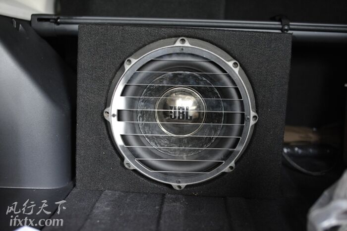 低音炮是美国JBL P1022 10寸低音,自由客尾箱够大,再加上JBL 低音所要求的容积也较小,尾箱内放置JBL P系列10寸低音箱体占尾箱不到四分之一的空间,并不影响尾箱的正常使用。