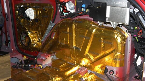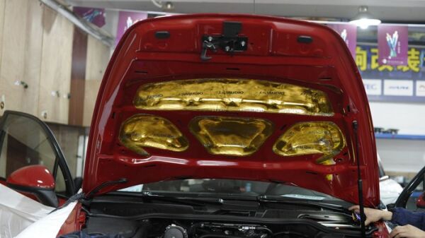 隔音采用了市场上品质最好的纯天然丁基橡胶的萨迪金甲止振板,不仅材料品质好,厚度更是达到了3mm,是某大品牌隔音厚度的2倍!效果自然更佳。