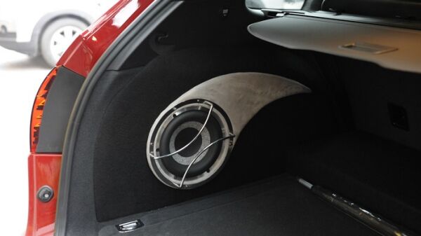 8寸的法国劲浪21WX低音在尾厢左侧倒模安装,最大限度地节省了尾厢空间。