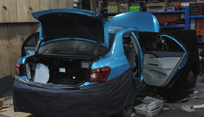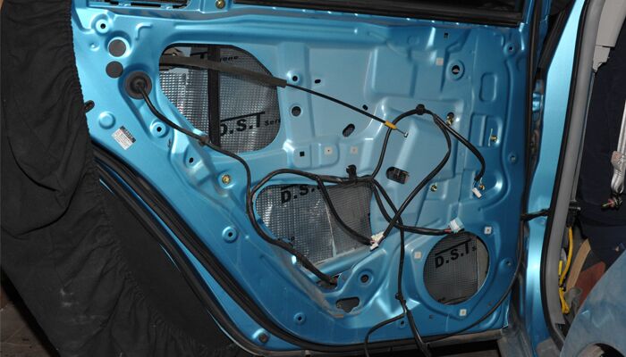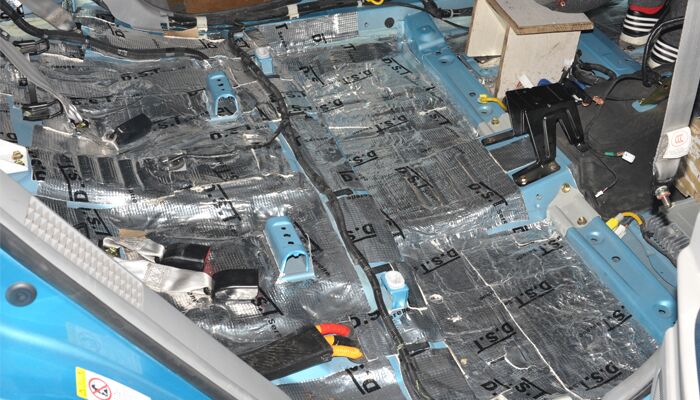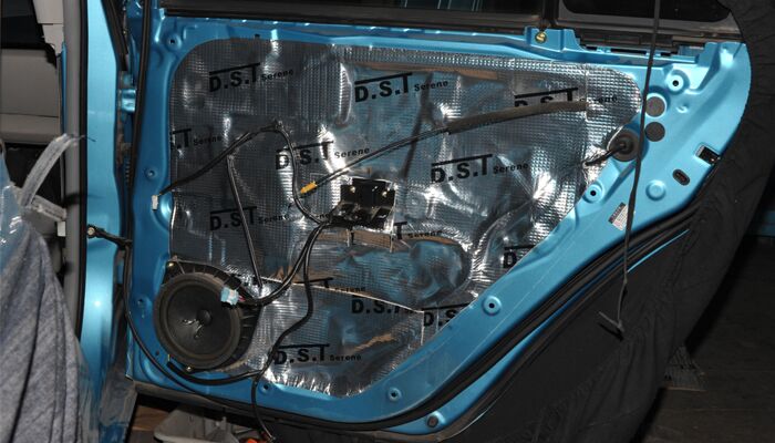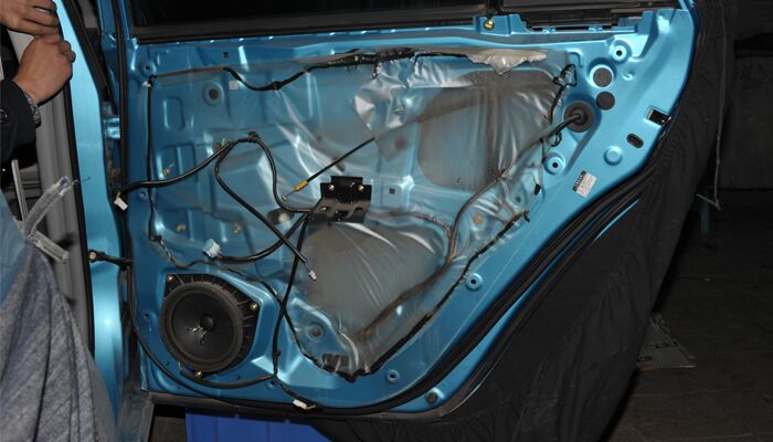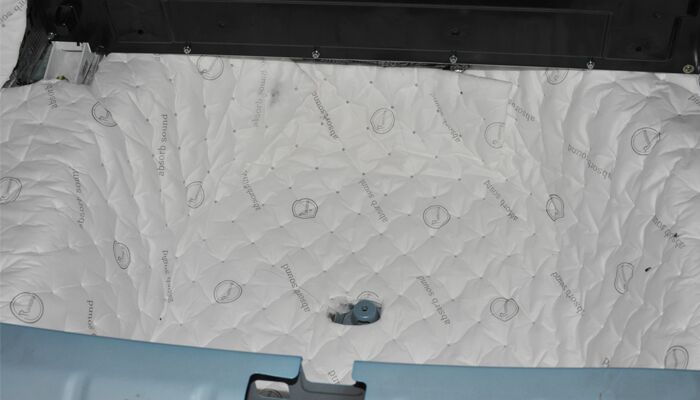 尾箱由于空间较大,噪音在这里显得特别明显。第一层粘贴DST止振材料进行加固,第二层使用锐宁吸音棉吸收低频噪音。彻底隔绝噪音享受安静的乘车环境。