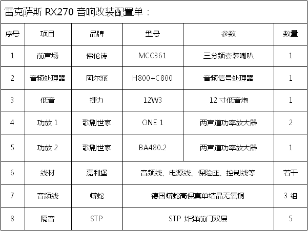 原车音响的喇叭发音浑浊不清,欠缺层次感,有时随着音量的大小还会出现失真的现象。其实,原车音响不好是绝大多数汽车的通病,雷克萨斯RX270也是如此。车主选择来到我店进行音响改装,改善车内音响效果。