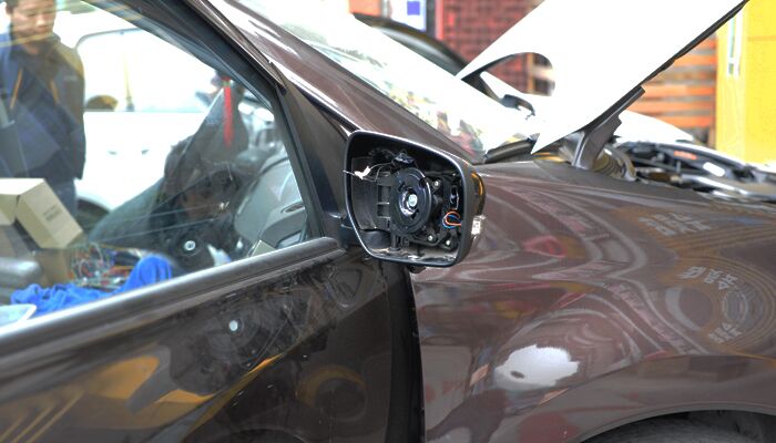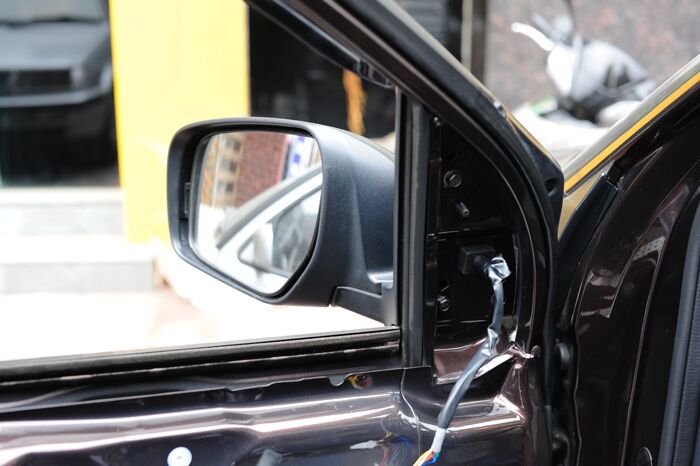 右视镜安装摄像头也是同样的原理,拆下右视镜加装摄像头。