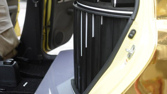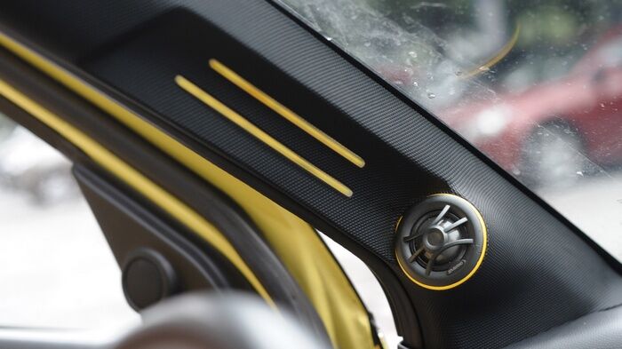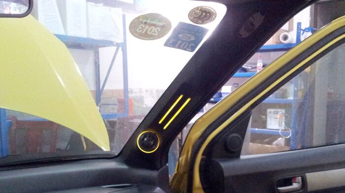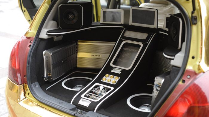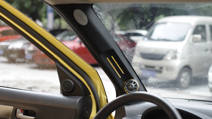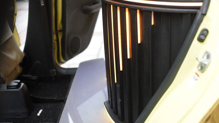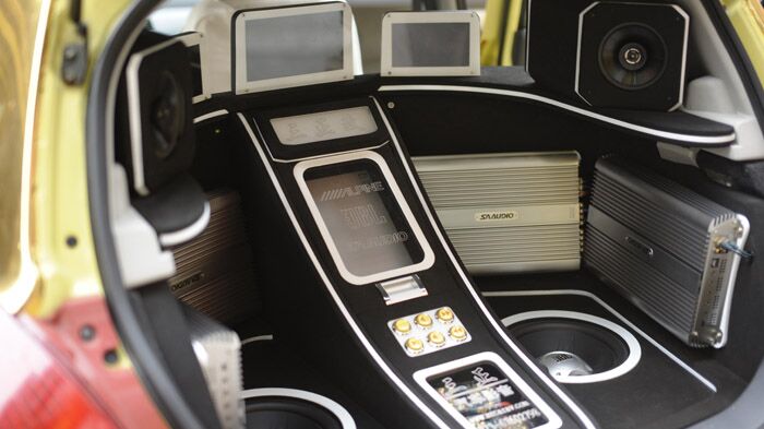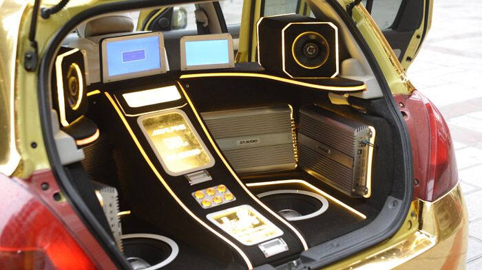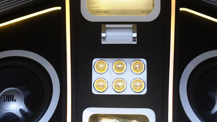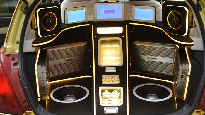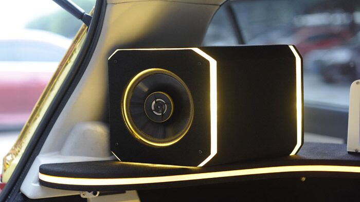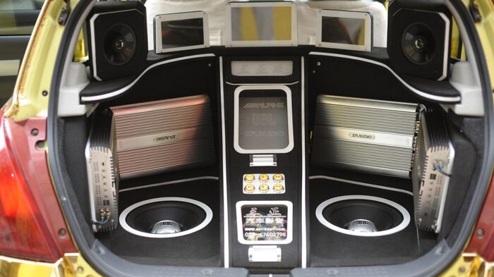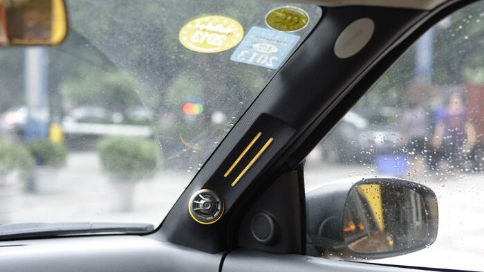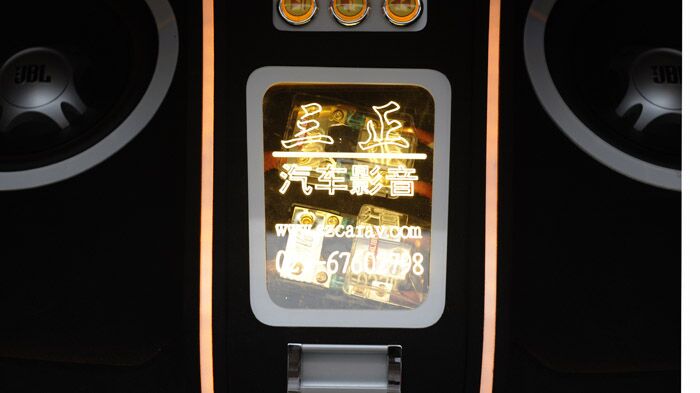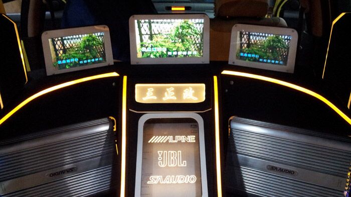 朝向尾厢后面的3台显示器,演示时打开尾厢就可以观看。