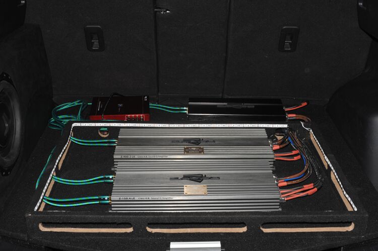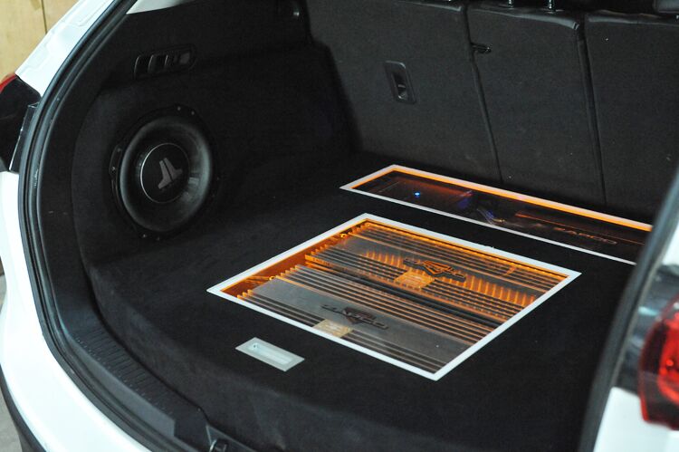 为了渲染音乐的氛围改装技师为汽车添加了一只美国捷力JL 10TW3十寸超薄超低音,通过对超低音以及各个音频单元功放的安装不得不让人佩服改装技师超凡的改装功力。美国捷力JL 10TW3十寸超薄超低音采用倒模安装工艺安装在了汽车的尾箱当中,而功放则经过合理摆放放在了汽车尾箱当中并增加了灯光效果,一切看起来是那么的美轮美奂。此次改装不仅提升了音响的品质,还增加了汽车的美观。