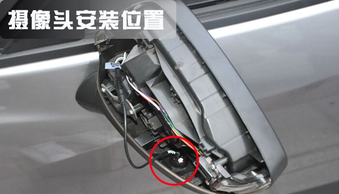 左、右摄像头安装在后视镜底部位置,在安装的是必须特别小心,以免损伤后视镜镜片以及内部配件。
