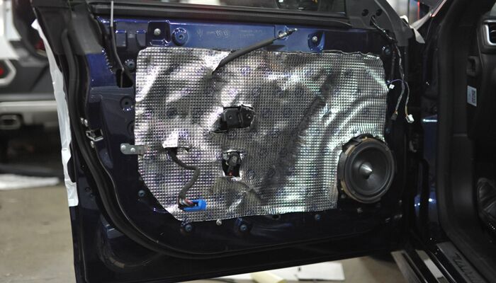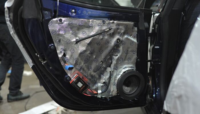 隔音是音响改装的基础,为的是营造良好的视听环境,车主选择的是俄罗斯进口全球第一品牌STP军工隔音材料。门板双层隔音能将门板密封成喇叭播放最理想的箱体结构。