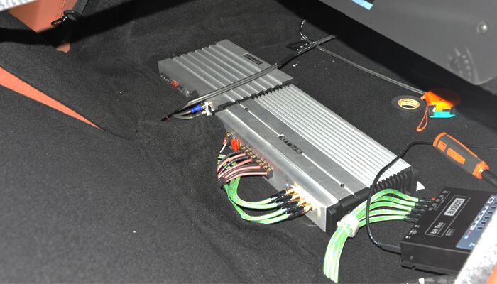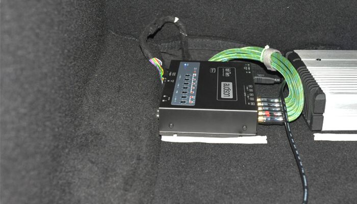两台佛伦诗功放安装在尾箱,安装完成使用盖板盖上,不影响尾箱美观的同时也大大降低了对尾箱储物空间的影响。
