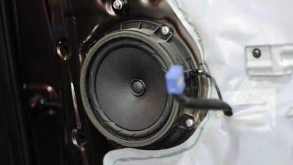 另一部分技师开始安装喇叭。前声场的JBL GTO 608C中低音喇叭在前门原位,加防水垫圈和防水罩安装。