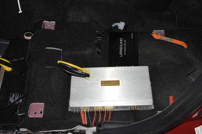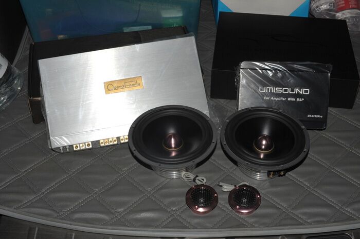 根据车主的品味以及预算,重庆三正给出了一个较为特殊的改装方案,前声场更换了一套黄金声学GR165.2套装喇叭,并将原车的前声场喇叭移装到了后声场。这样的做法的好处第二次升级能很好地利用第一次升级资源,如前声场换个档次更好的喇叭,将第一次升级的移到后面,这样一来,后声场喇叭起到很好补充作用。也不会因为第二次升级而造成器材浪费。同时音源部分也做出了更换,一台优美声DA470 DSP处理器的加入,优化了原车音响音源,从根部解决了原车音响不足的问题。用来推动整套系统的是一台歌剧世家VA400.4功放,确保了喇叭的动力。