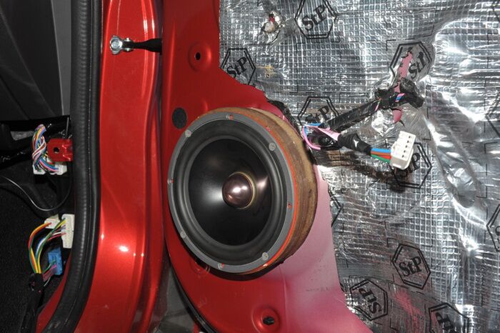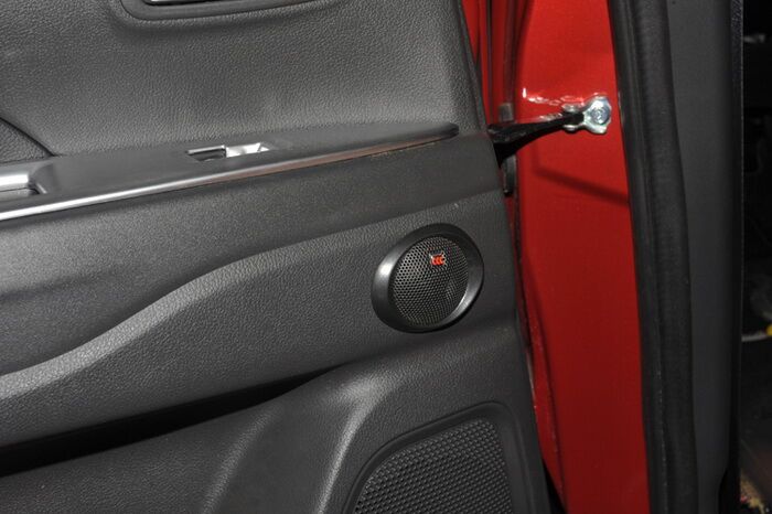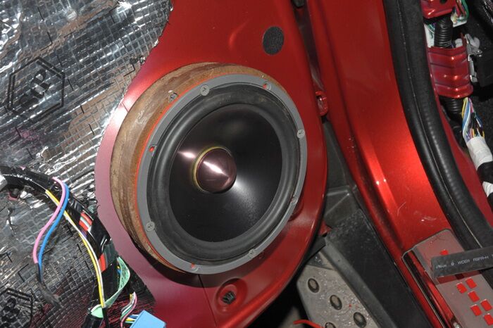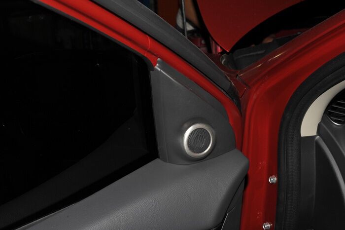 在安装上,三正的改装师傅充分为车主考量,前声场中低音喇叭安装在原车门板中低音喇叭位置的基础上,为喇叭加装了喇叭木制垫圈,对喇叭起到了固定的作用,防止在行驶过程中产生振动影响了喇叭音质,并为喇叭设计了喇叭防水罩,有效的保护喇叭不受雨水的侵蚀。高音喇叭责备安装在了三角位出,合理的安装高度,能够拓宽音场,让音场效果更佳真实。原前声场喇叭移到后声场,也是物尽其用,用最实惠的手段升级原车音响。