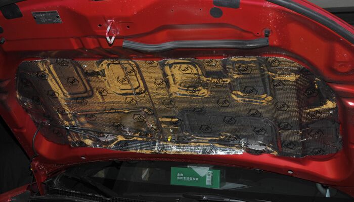 引擎盖使用的是STP I卫士,主要用于降低发动机噪音,保护引擎盖免受发动机舱高温的烘烤。
