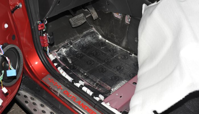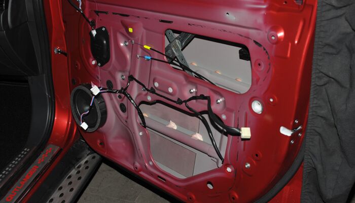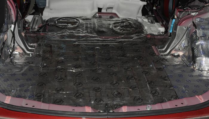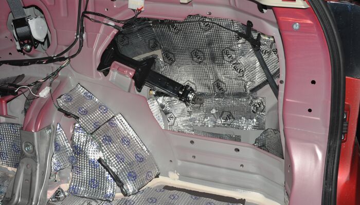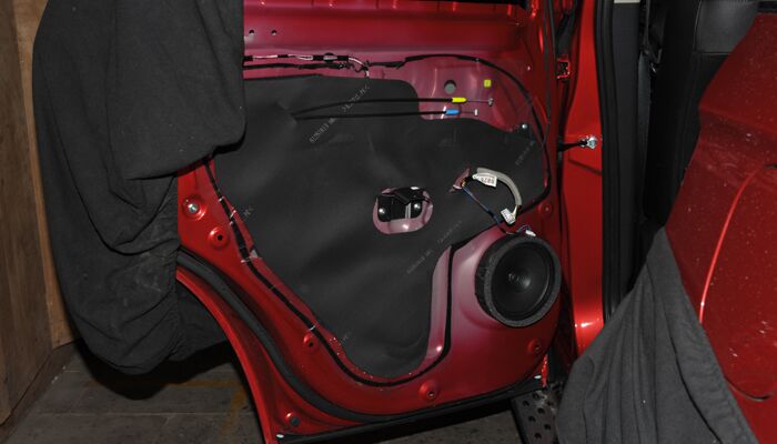 门板由于铂金较薄会产生机械共振噪音,同时风燥也相当大,门板使用STP I卫士做双层隔音,内层隔音加强门板强度抑制共振,外层隔音降低风燥将门板密封成一个箱体对原车喇叭提升也非常大。在加一层吸音棉吸收低频噪音。