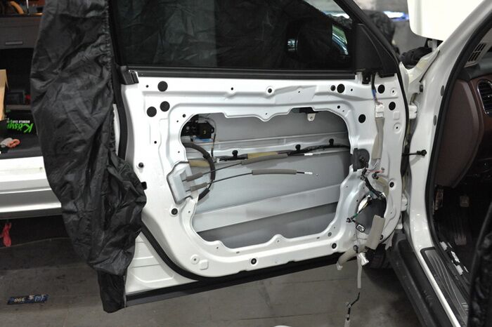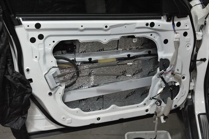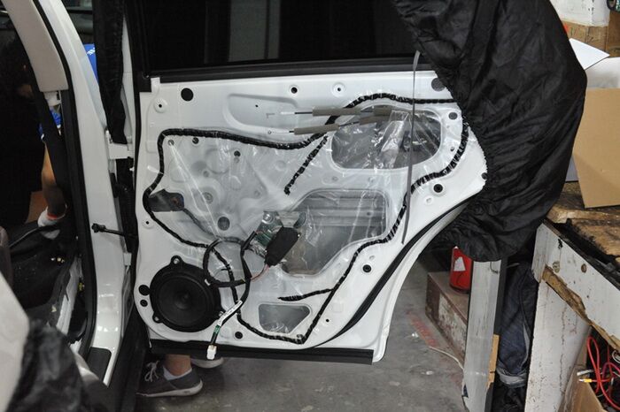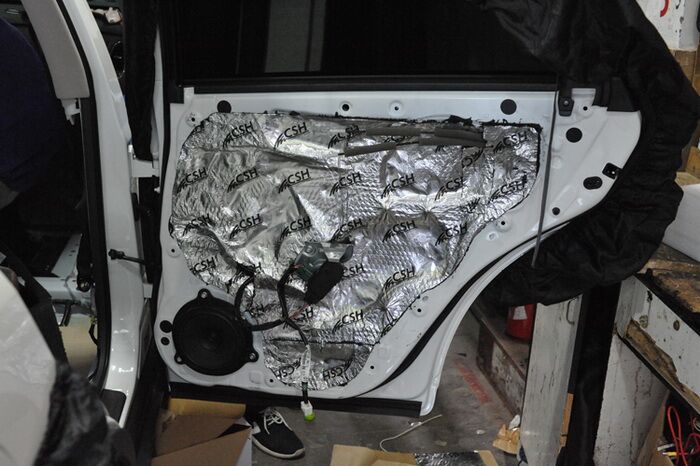 首先是隔音材料的选择,在改装技师的建议下车主选择的是能够达到军工级别的俄罗斯STP隔音材料。其中门板使用的是CSH银卫盾系列,它具有防水的特性且能够黏贴于复杂的表面,所以汽车门板使用CSH银卫盾恰好不过。汽车门板的隔音不仅能够降低车厢内的噪声,同时还能够提升汽车音响的品质。