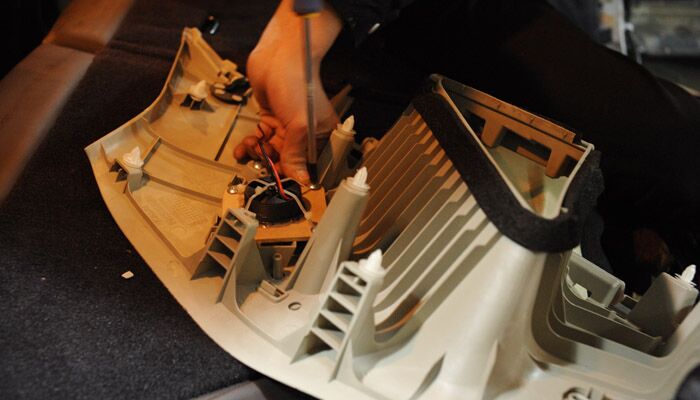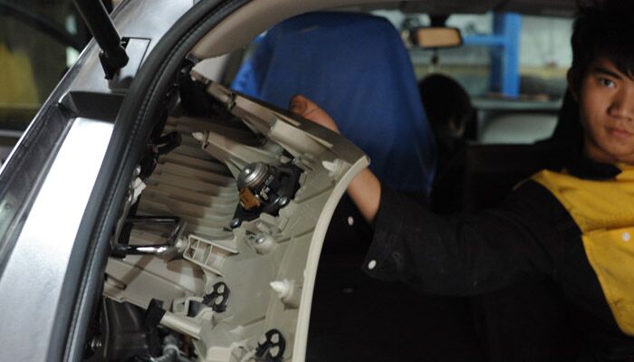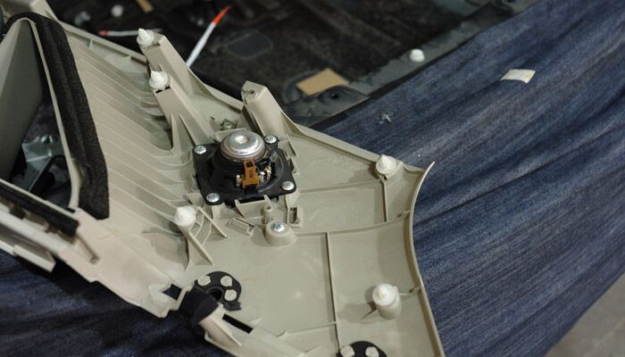 为了不改动原车内饰,不影响原车外观,喇叭全部在原位安装。在换上新喇叭之前,先拆除原车的喇叭。
