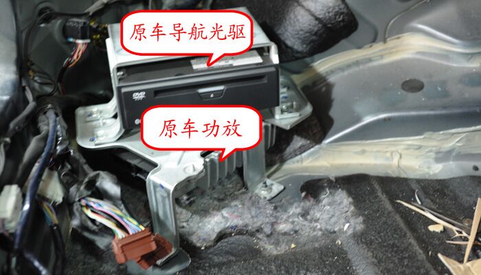 原车的导航光驱和功放位于尾厢底部的左侧,如下图所示: