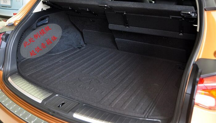 车主不愿意占用后备厢空间。于是我们建议车主在尾厢左侧内凹的位置倒模安装低音炮。如下图所示: