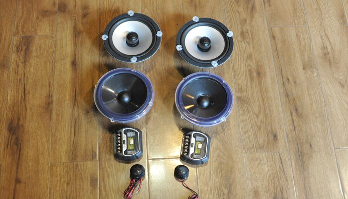 本次前声场采用JBL当中最具性价比的套装GTO608C这款两分频套装喇叭。后声场采用了萨迪6.5英寸两分频同轴SA-AC165 。高音安装在A柱上。