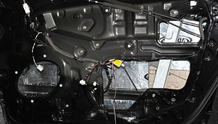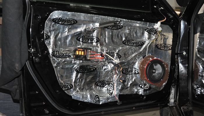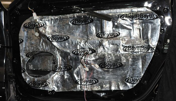 对车门进行双层隔音能强化门板的铁皮厚度,同时密封的车门近似一个独立箱体,这对提升喇叭的音响效果有非常好的帮助。