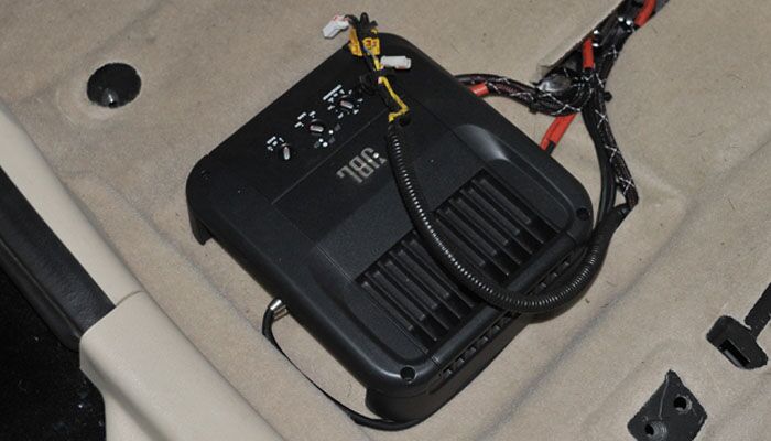 JBL GTO-501EZ单声道低音功放按在副座下方,最大限度的为车主节约车内可用空间,这是很多现在车友要求的安装方式。