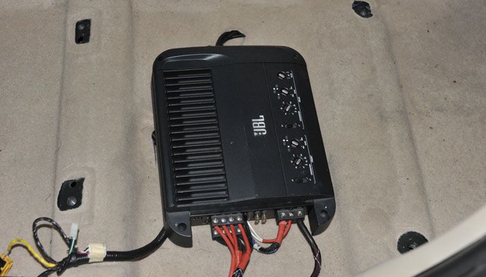 JBL GTO-804EZ四声道功放安装在主驾座位下方,既节省了车内空间有方便日后的调试以及升级。