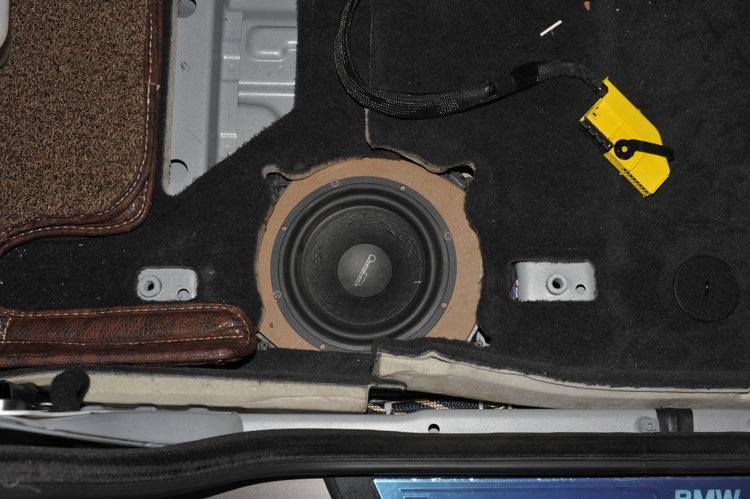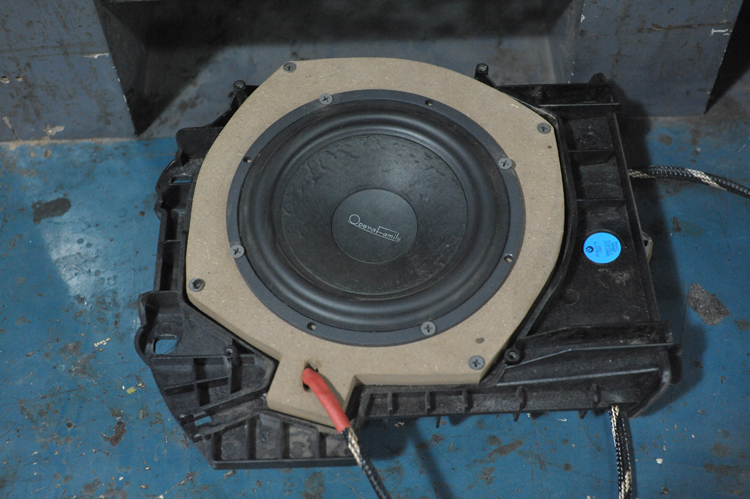 中低音喇叭安装在座位下面原车中低音喇叭箱体中。