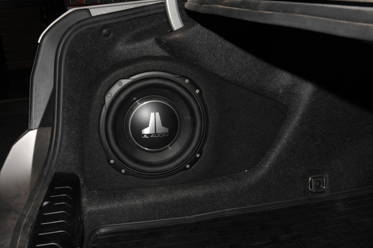 美国捷力10TW3-V4超薄低音体积超薄却有强劲效果,只需要一个有限的容积,就能够发挥出让人满意的强劲表现。倒模安装在尾箱左侧。