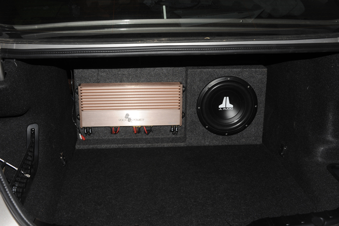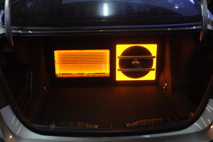 功放和低音倒模安装在尾箱,打开尾箱灯光亮起非常美观。
