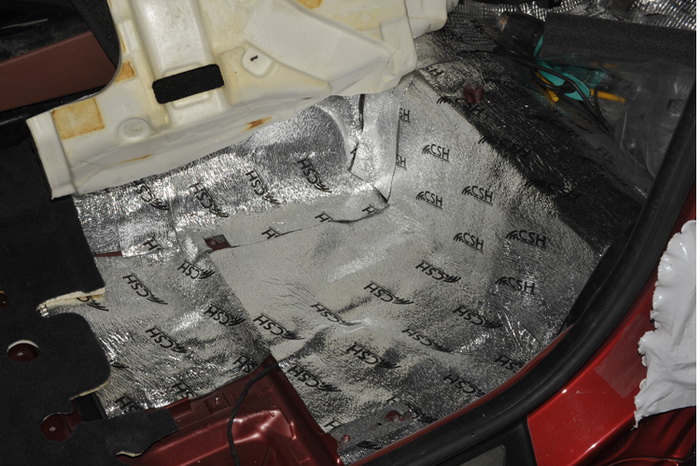 尾箱第一层隔音用CSH小炸弹进行隔音