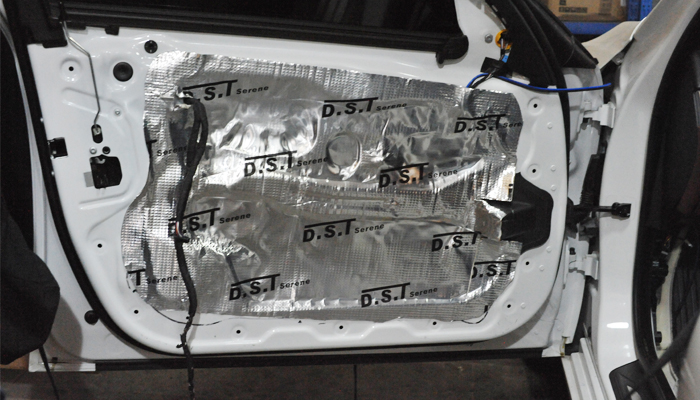 隔音是音响改装的基础,为的是营造良好的视听环境,当车行驶在路上时,车门铁皮会跟着产生共振产生噪音,风燥、空气噪音也会通过门缝传入车厢内,令开车的人感到烦躁甚至是焦躁不安,而门板作为前声场喇叭安装的地方,没有做隔音的车板就像一个漏风的箱体,容易导致音响音质失真。