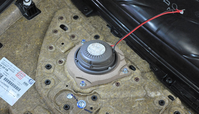 原车中音位于门板之上,使用喇叭专用木垫圈将中音安装在门板中音位。