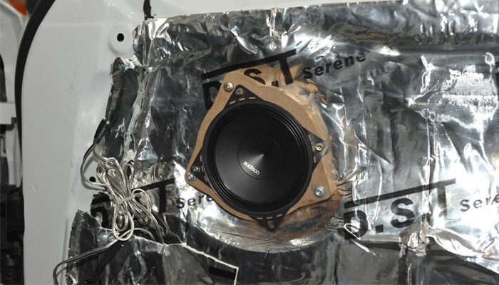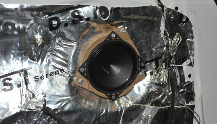 隔音是音响改装的基础,为的是营造良好的视听环境,当车行驶在路上时,车门铁皮会跟着产生共振产生噪音,风燥、空气噪音也会通过门缝传入车厢内,令开车的人感到烦躁甚至是焦躁不安,而门板作为前声场喇叭安装的地方,没有做隔音的车板就像一个漏风的箱体,容易导致音响音质失真。