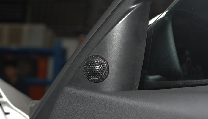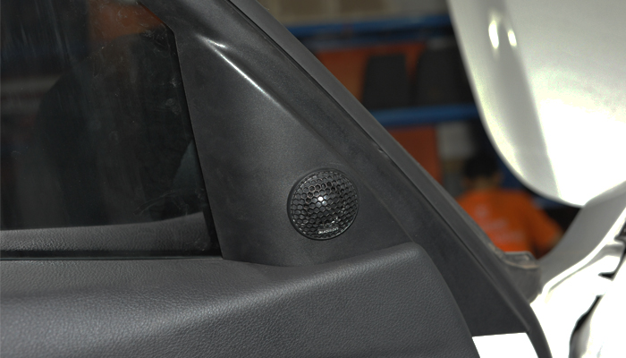 高音安装在原车三角板高音位,三角板处安装高音效果更好,同时也方便安装。