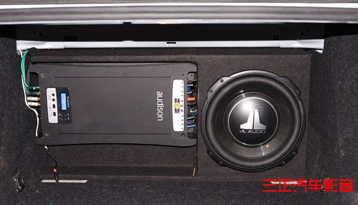 后备箱工艺,低音、功放、解码器等接线完成。