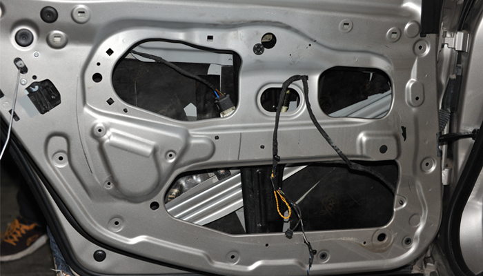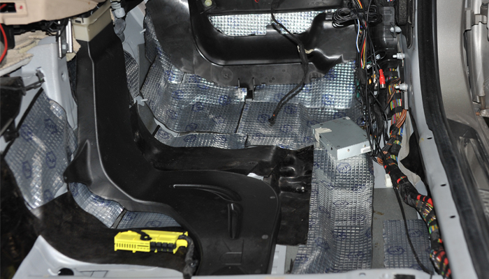 本次主要对引擎盖、翼子板、四门、底板、尾箱做了隔音处理。汽车检车和保护工作做好后,就开始施工。
