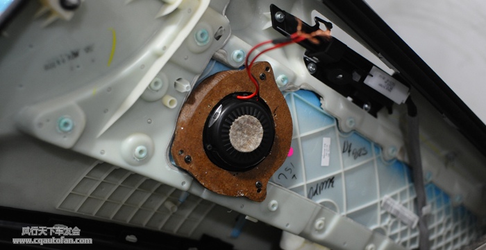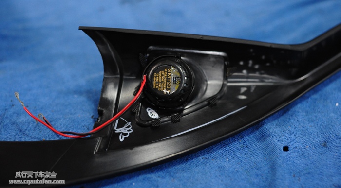 首先把原车三角板位的高音拆下来,再将摩雷意蕾9高音单元安装到原位: