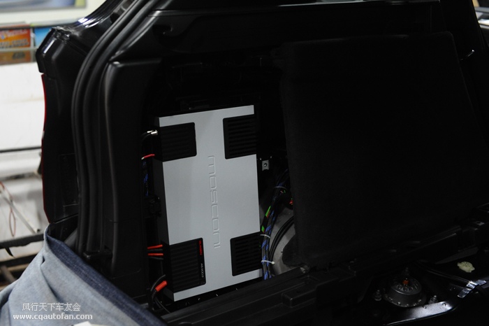 推动意蕾9三分频喇叭的功放也采用隐藏安装方式,在尾厢右侧的空位处刚好可以放下MOSCONI AS200.2,如下图:从外观上看不出任何变化,真正的“无痕改装“。